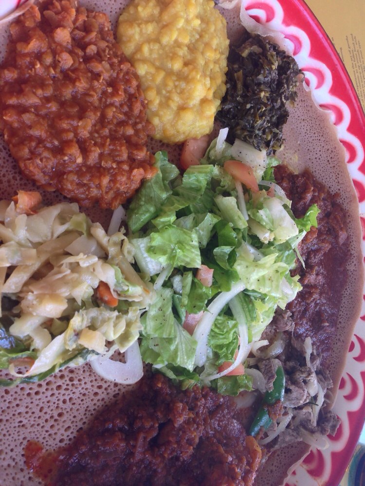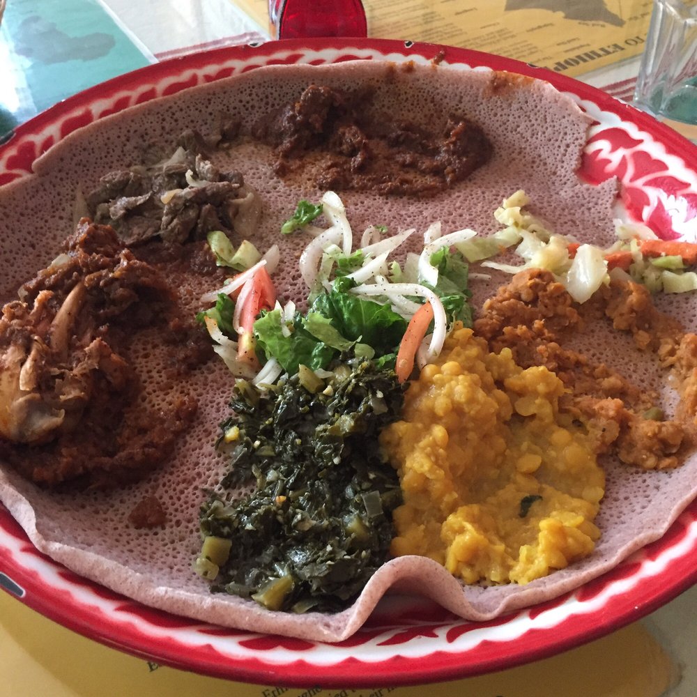 Cheap delicious Ethiopian food. They make it easy for even a couple to sample multiple dishes with their combination entrees. Good vegetarian options, though I love their Berbere meat dishes. A bit of a dive and definitely off the beaten path at University and Euclid.
